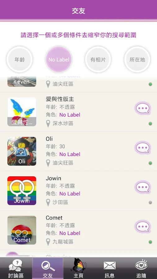 但該有的年齡, 地區, 甚至角色 都有建立filter,